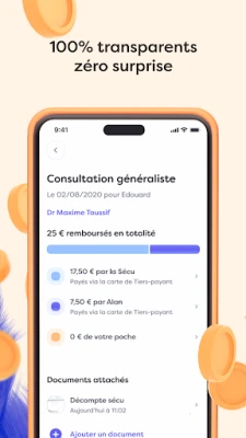 Uitați de multitudinea de aplicații și de birocrația obositoare. Cu Alan, aveți la îndemână o suită completă de instrumente: de la posibilitatea de a transmite rapid documente medicale printr-o simplă fotografie, cum ar fi facturi sau devize, până la notificări prompte despre rambursări, adesea înainte ca banca dumneavoastră să le proceseze. Găsiți instantaneu detalii despre acoperirea dumneavoastră medicală pentru servicii specifice, accesați cardul de plată directă oricând și oriunde, și beneficiați de consultanță specializată prin chat sau apel video cu o gamă largă de profesioniști – de la psihologi și dieteticieni, la kinetoterapeuți – chiar și în weekend. Comandați ochelari sau lentile noi fără a achita în avans, iar echipa de suport Alan este disponibilă să vă răspundă la orice întrebare în mai puțin de 5 minute, prin chat, email sau telefon.