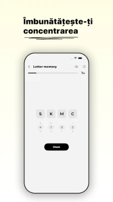Indiferent dacă ești student în căutarea succesului academic, un profesionist cu cerințe cognitive înalte, sau pur și simplu cineva care dorește să-și păstreze mintea tânără și alertă, această aplicație este partenerul ideal. Pe termen lung, vei observa o memorie mai robustă, o capacitate de concentrare superioară, decizii mai rapide și o claritate mentală generală, sporind productivitatea și abilitățile de rezolvare a problemelor. Totul este conceput pentru liniștea ta: nu necesită crearea unui cont și nu te va bombarda cu notificări, oferind un spațiu privat și sigur pentru evoluția ta cognitivă.