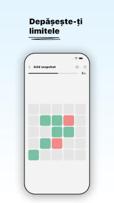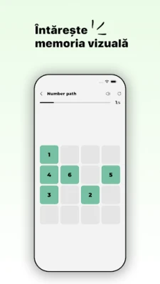 Uitarea și lipsa de focalizare devin de domeniul trecutului printr-un set vast de provocări concepute special. De la ghicitori vizuale cu simboluri și forme, la secvențe numerice și spațiale care îți testează memoria de lucru, fiecare activitate este o călătorie stimulantă. Această platformă acoperă trei zone cheie de abilități – memorie vizuală, memorie de lucru și memorie secvențială/spațială – asigurând un antrenament complet. Structurate pe multiple niveluri de dificultate, aceste exerciții îți permit să progresezi în ritmul tău, într-un cadru vizual minimalist și calm, menit să elimine orice distragere.