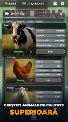 Pășește într-o lume vastă a agriculturii moderne cu Farm Manager, un simulator strategic unde viziunea ta se transformă într-un imperiu global. De la parcele modeste la rețele de producție extinse, ai libertatea de a modela viitorul afacerii tale agricole. Asumă-ți rolul de lider iscusit, cultivă pământuri fertile și crește animale premiate, totul în timp ce navighezi provocările unui peisaj economic în continuă schimbare. Echipează-te pentru a-ți testa ingeniozitatea împotriva altor manageri la nivel mondial, urcând în clasamentele prestigioase pentru a demonstra supremația ta în domeniu.
