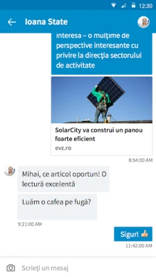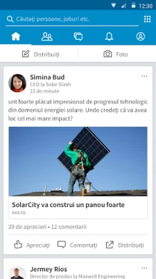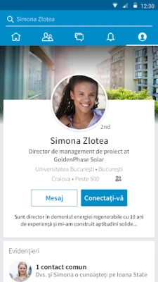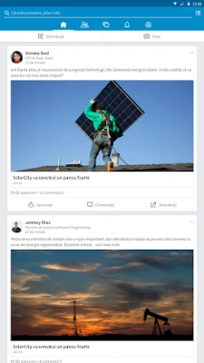 Extinde-ți rețeaua profesională și construiește legături semnificative cu ușurință. Interacționează cu profesioniști din domenii variate, vizualizează-le profilurile și descoperă potențiali parteneri sau mentori. Ai ocazia de a-ți consolida poziția de lider de gândire, distribuind articole relevante și participând la discuții ce contează. Indiferent unde te afli, poți actualiza instantaneu detaliile profilului tău, asigurându-te că CV-ul tău digital reflectă întotdeauna cele mai recente realizări și competențe. Urmărește companiile de interes pentru a primi notificări despre posturile vacante, noutăți de business și sugestii inteligente de conectare.