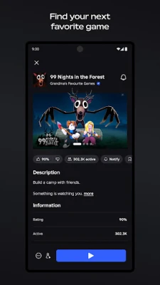 Cufundă-te în milioane de experiențe diverse, de la simulatoare detaliate și trasee cu obstacole provocatoare, până la bătălii multiplayer strategice și gestionarea propriilor afaceri virtuale. Descoperă titluri populare precum Adopt Me!, Brookhaven RP, sau Dress to Impress, alături de nenumărate alte jocuri inovatoare, adăugate constant. Exprimă-te pe deplin creându-ți propriul avatar unic; personalizează-l cu mii de articole de îmbrăcăminte, accesorii, coafuri și animații disponibile în Piață. Joacă-te alături de prieteni și comunitatea globală, indiferent de dispozitiv, fie că este vorba de mobil, tabletă, PC, consolă sau chiar căști VR.