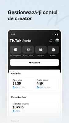 Începe o nouă eră a creației digitale cu TikTok Studio, destinația supremă pentru a-ți transforma viziunea în realitate. Conceput pentru a propulsa creatorii la noi înălțimi, TikTok Studio îți oferă un set de instrumente și funcționalități avansate, menite să optimizeze fiecare aspect al parcursului tău creativ. Descoperă oportunități neexploatate și obține perspective predictive, permițându-ți să dezvolți o strategie informată și metodică. Astfel, conținutul tău nu doar că va atrage atenția, ci va rezonata profund cu publicul tău, maximizându-ți vizibilitatea și deschizând calea către un potențial nelimitat.
