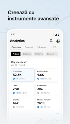 Îmbrățișează inovația și dă frâu liber imaginației cu resursele personalizate oferite de TikTok Studio. Fie că ești la început de drum sau un creator experimentat, vei beneficia de instrumente intuitive, recomandări adaptate și ghiduri detaliate care te susțin în fiecare etapă a procesului de creație. Aici, ideile tale prind contur și se transformă în povești captivante. În plus, explorează adâncurile preferințelor publicului tău cu analize aprofundate, identificând cele mai bune momente și tipuri de conținut pentru interacțiune, și cultivând o comunitate vibrantă. Gestionează-ți cu ușurință toate postările, comentariile și angajamentele, având control complet dintr-un singur centru inteligent.